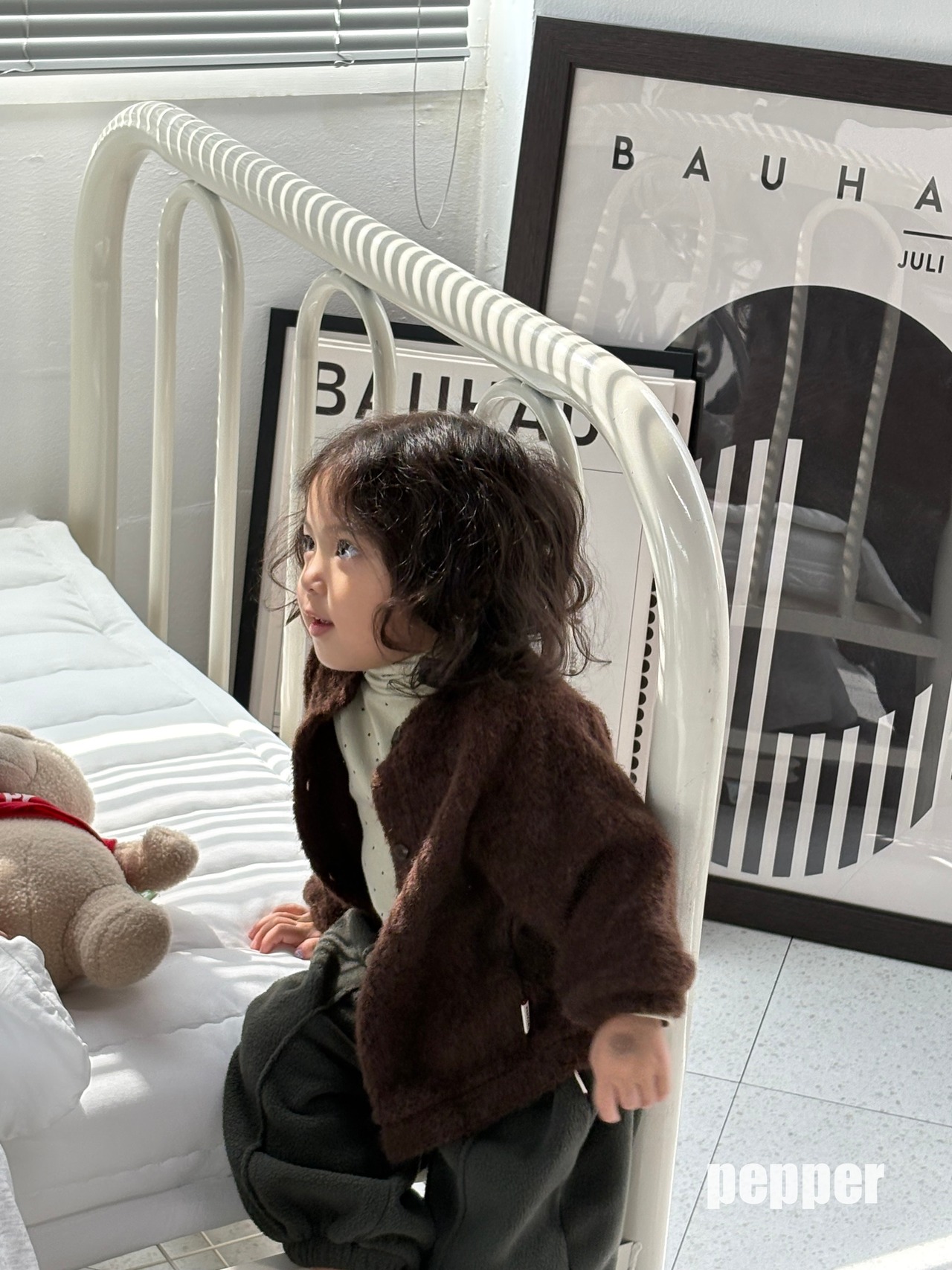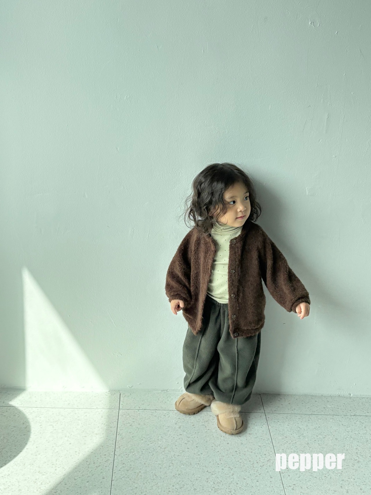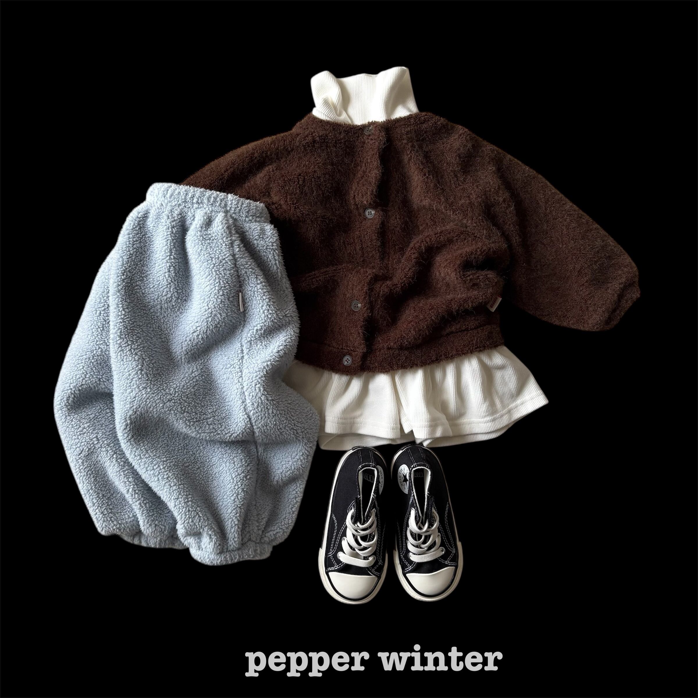 モデル : 101cm / 17kg / tops&outer M着用, bottom L着用