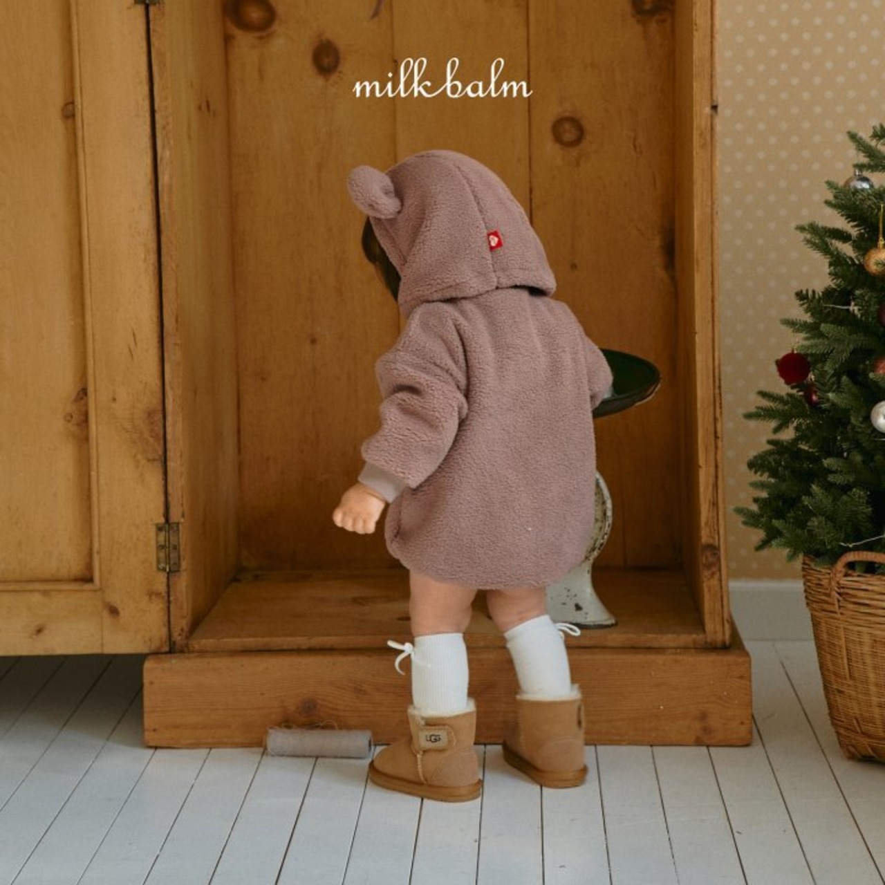[取寄] bebe) Bear embroidered suit / milk balm