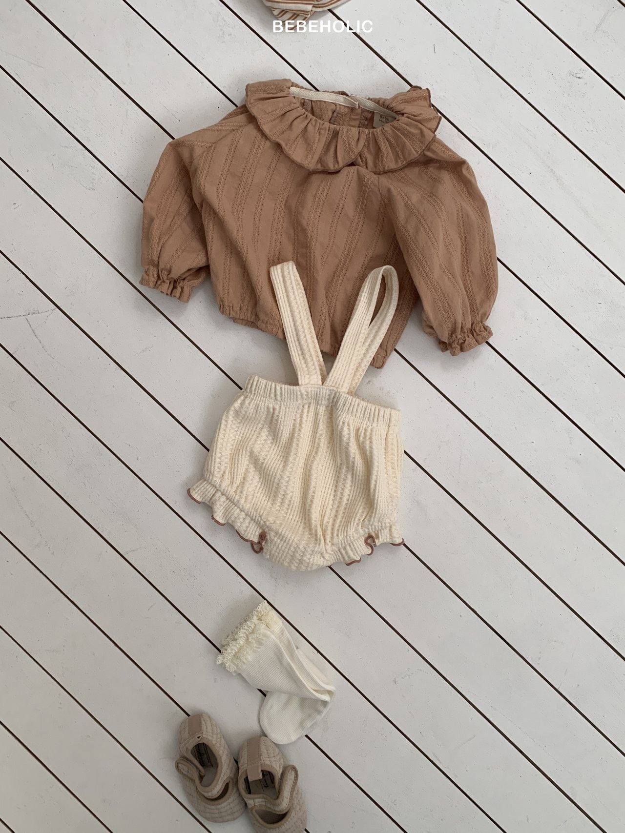 [取寄]送料無料1/20(火) 21:00まで Easy waffle suspender bloomer / BEBEHOLIC