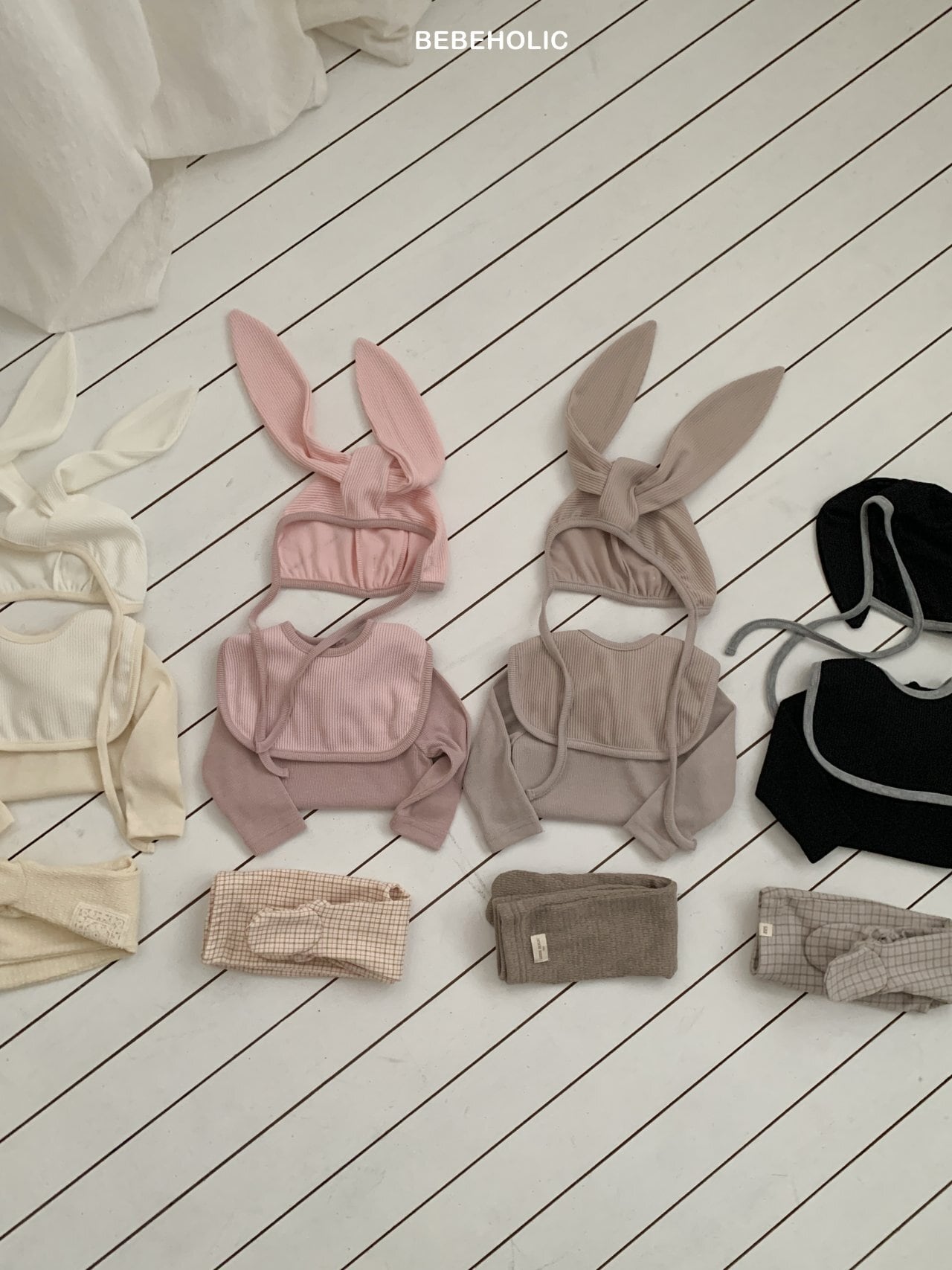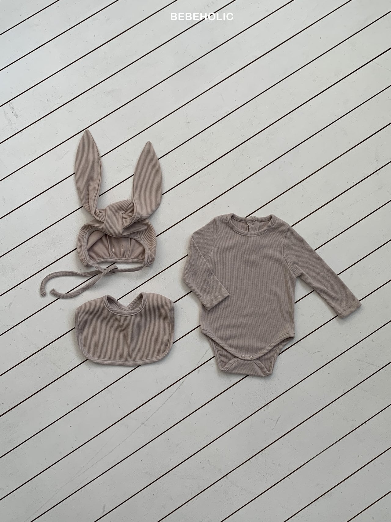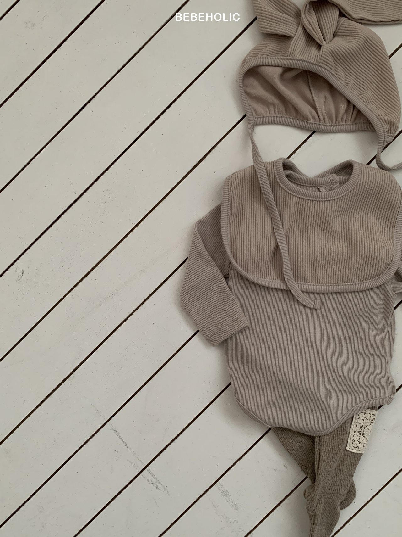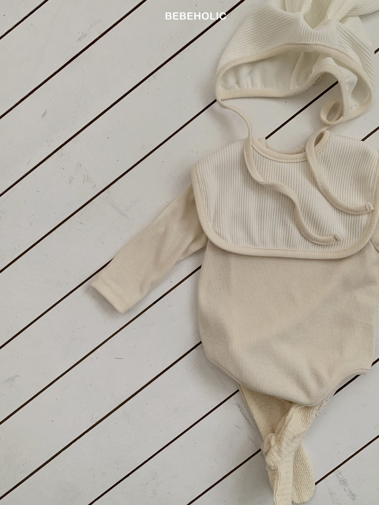 [取寄]送料無料1/20(火) 21:00まで Sugar Ribbed Set(Bonnet + Suit + Cape) / BEBEHOLIC