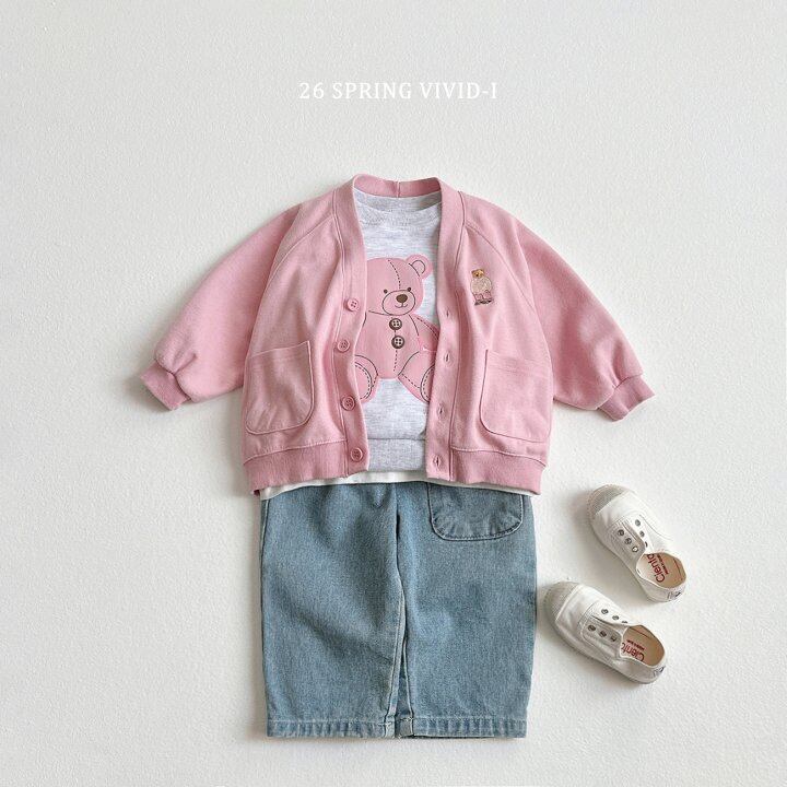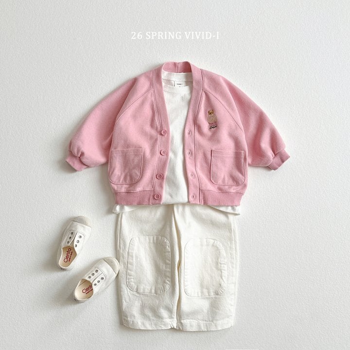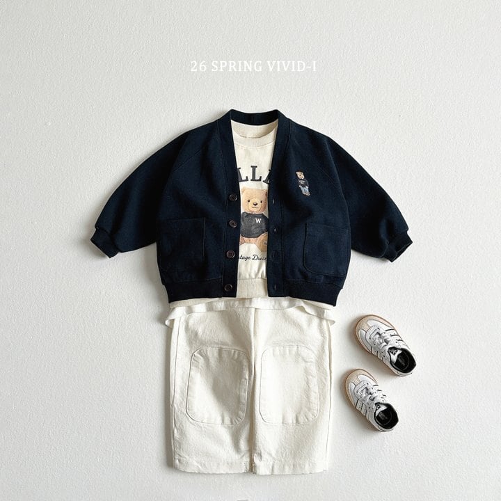 [取寄] Bear embroidery pocket cardigan / VIVID-I