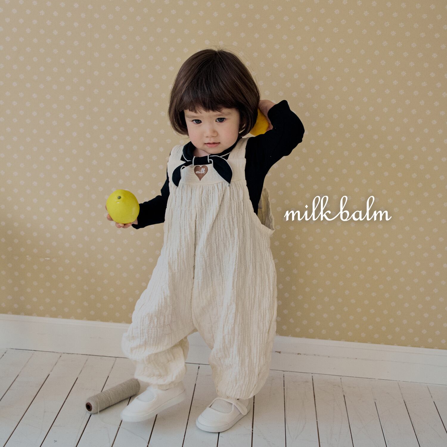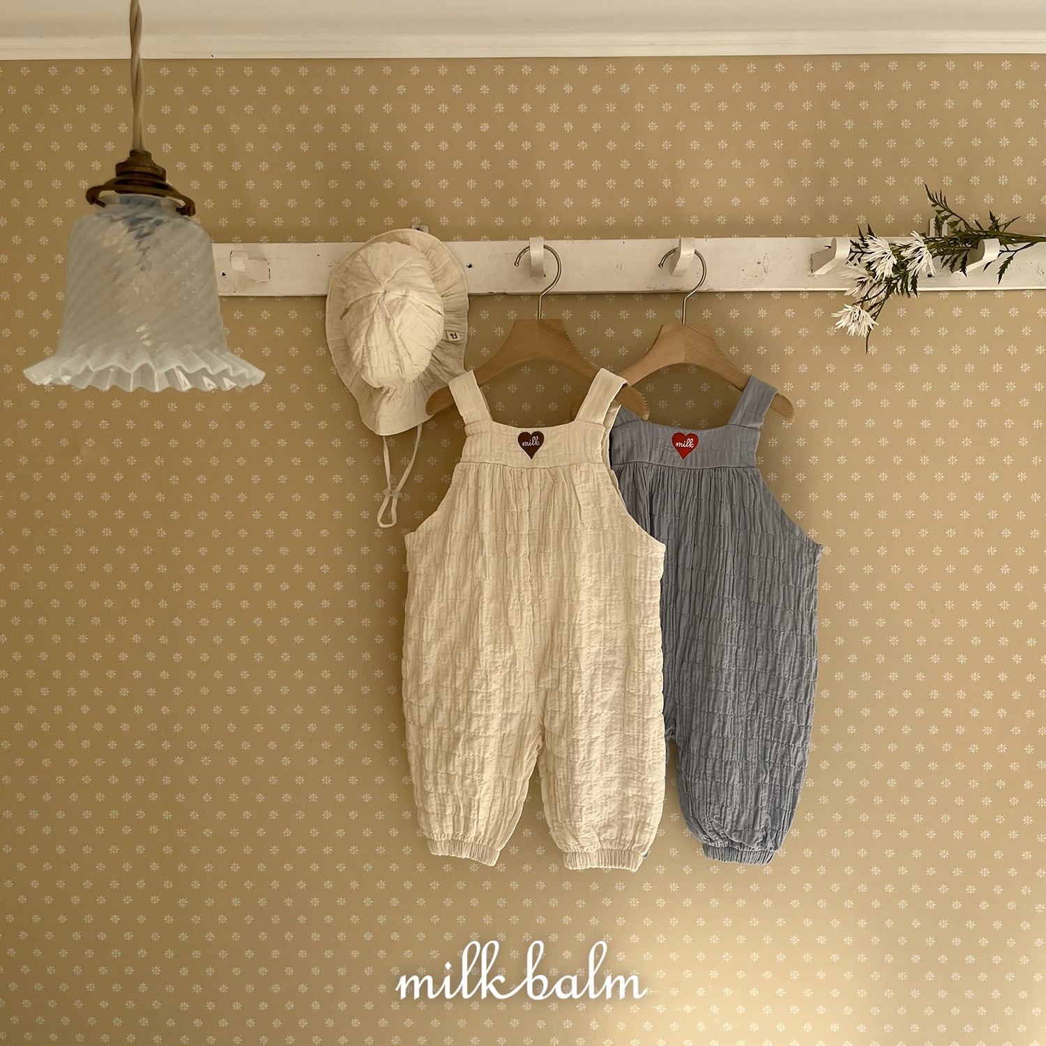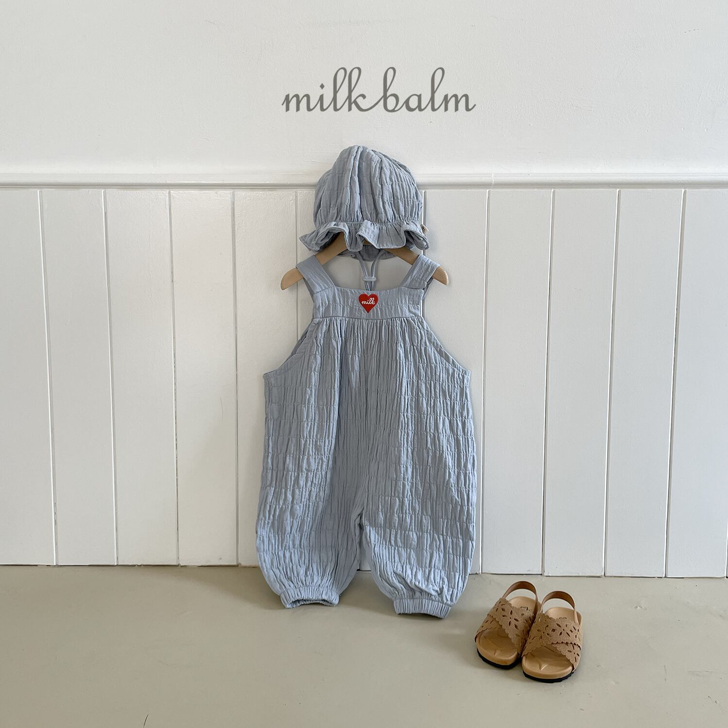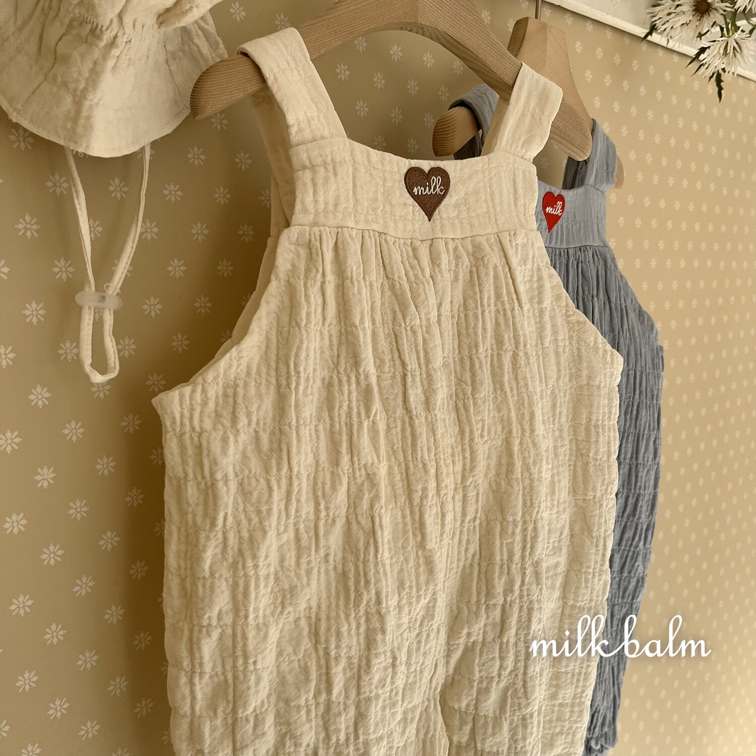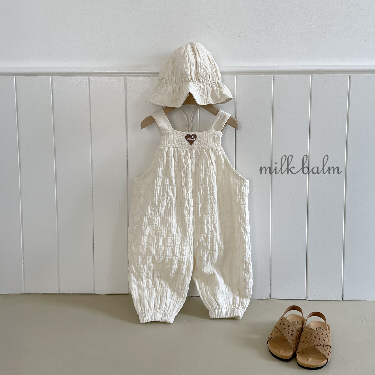 [取寄] bebe) Heart Embroidery Overall / milk balm
