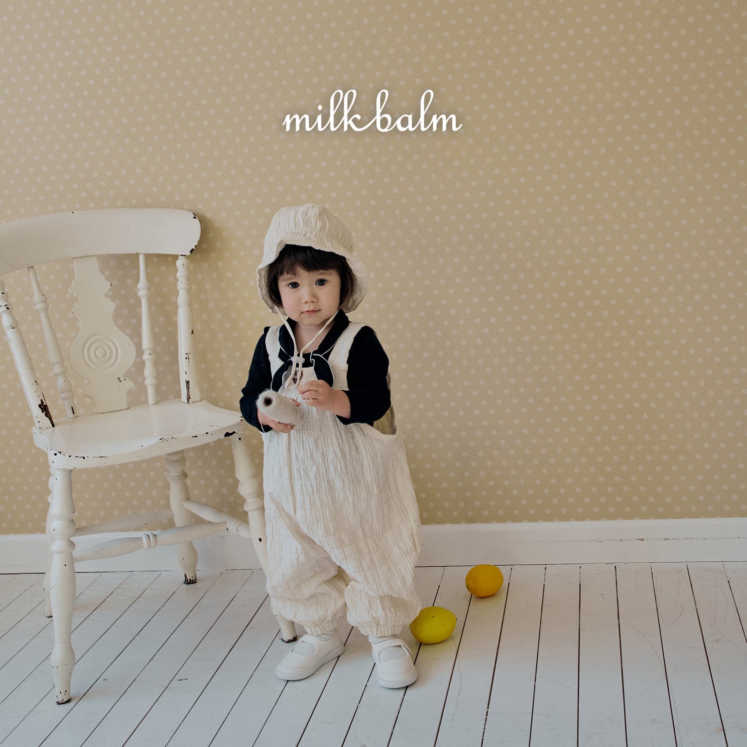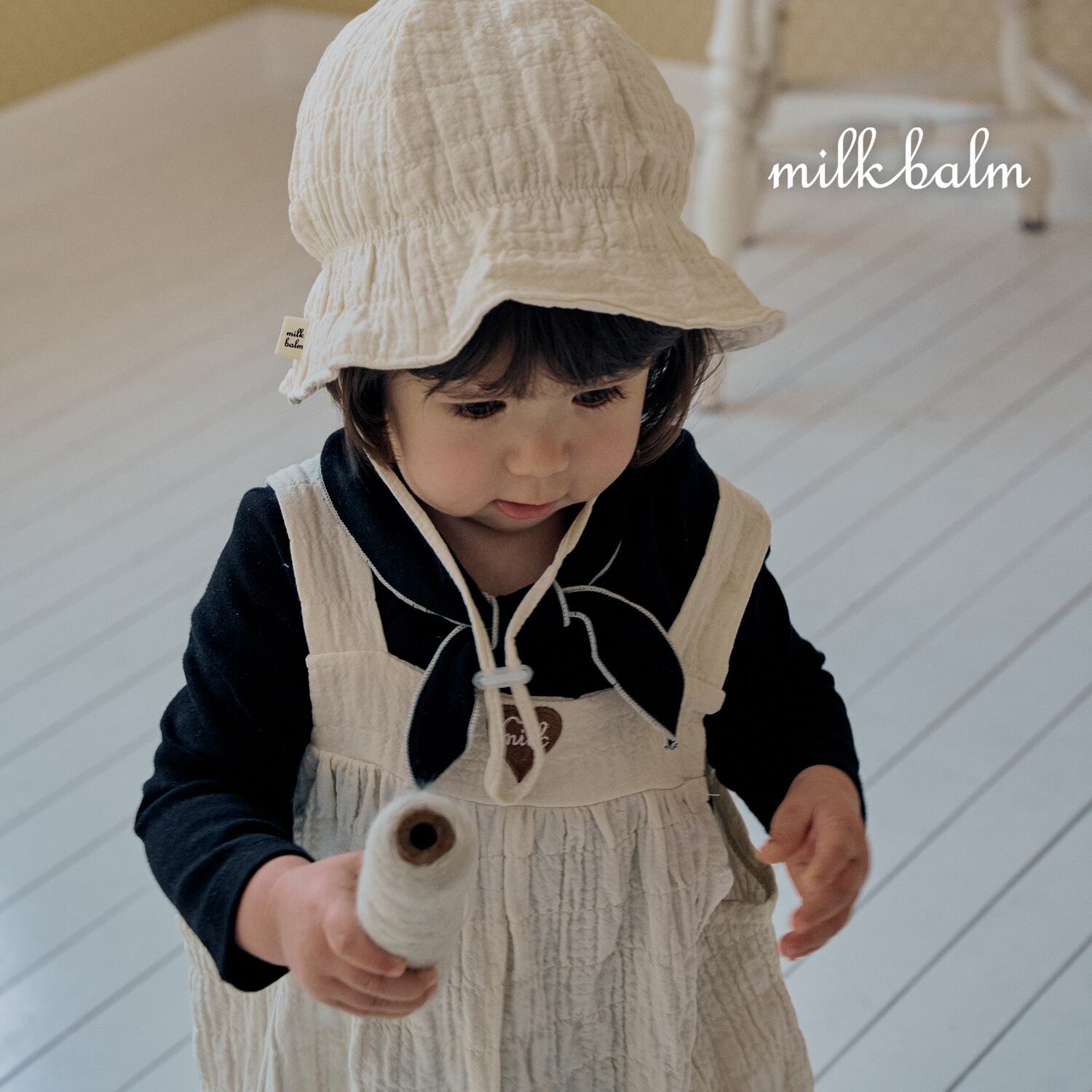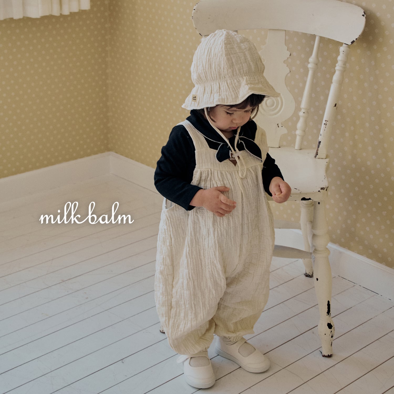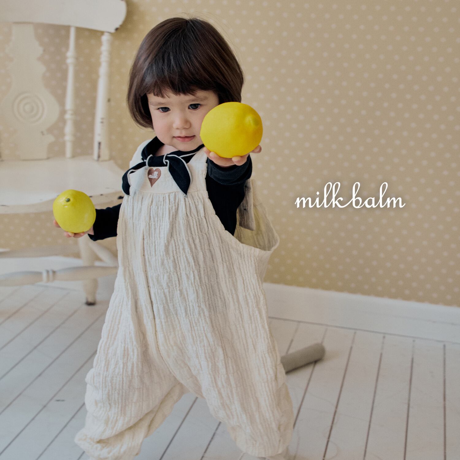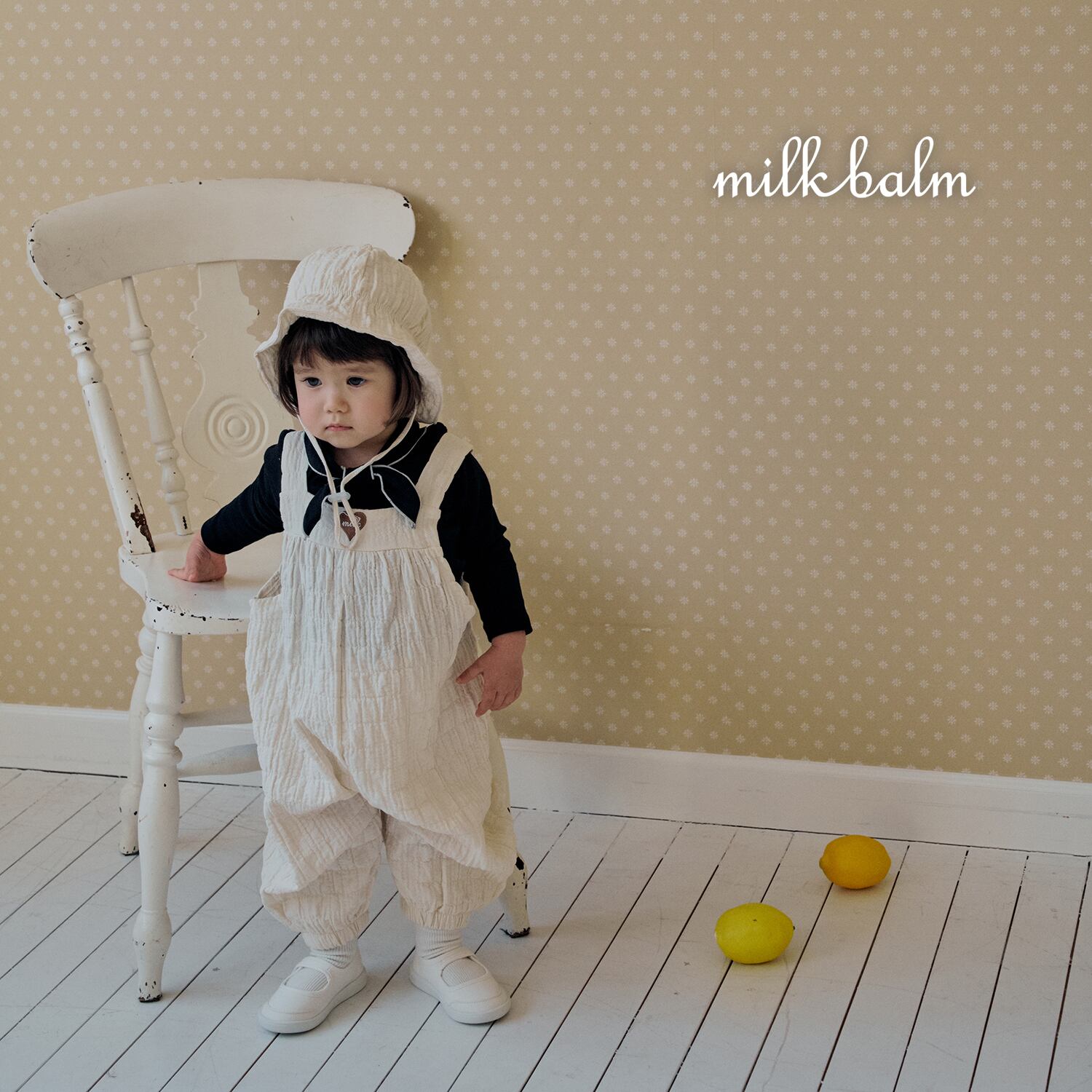 [取寄] bebe) Heart Embroidery Overall / milk balm
