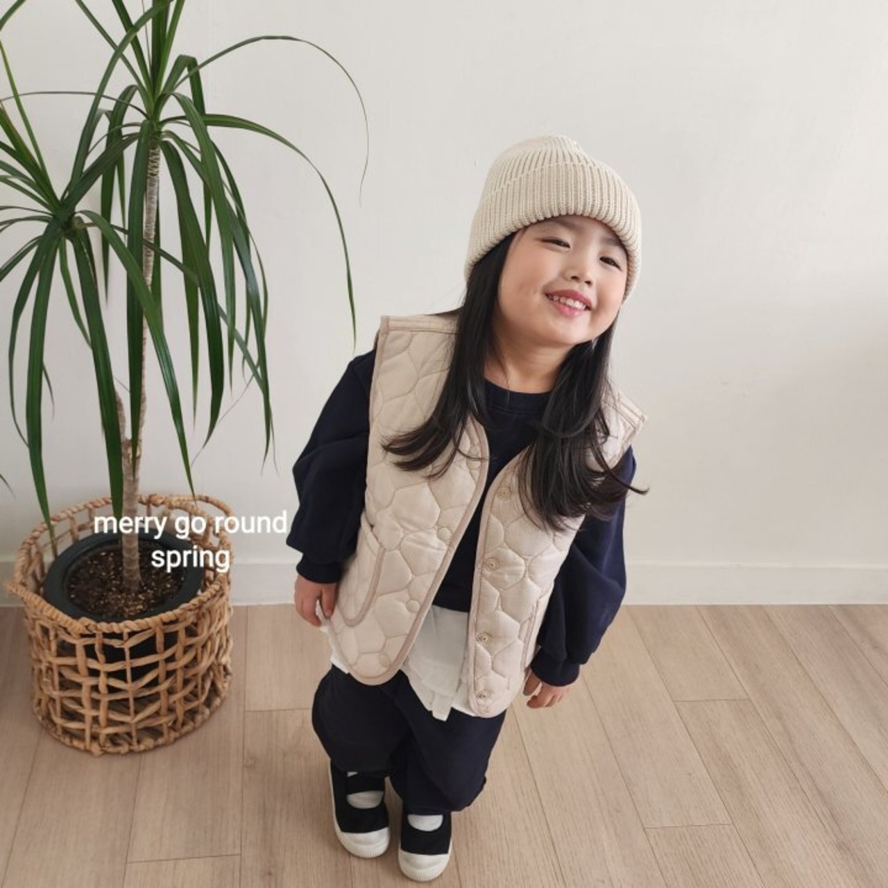 [取寄] Quilted vest (flower)/ merry go round