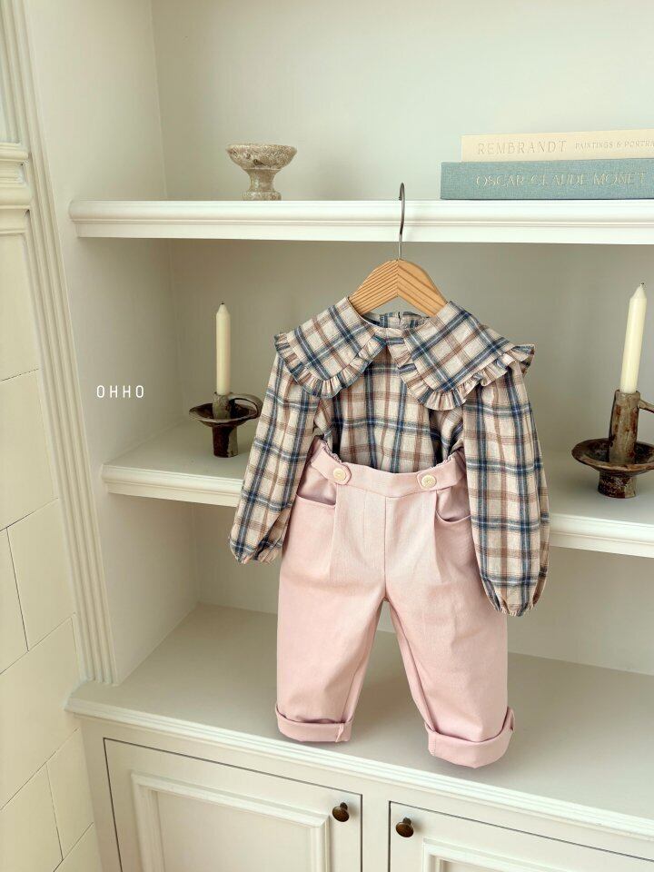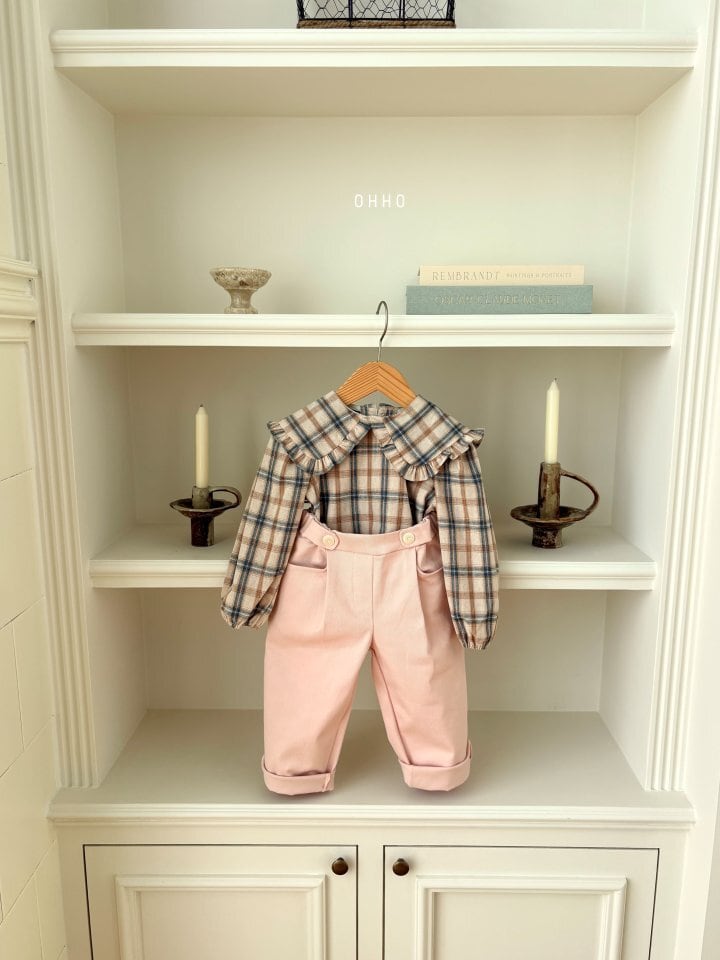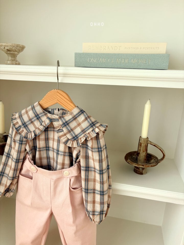 [取寄] Check Ruffle Collar Blouse / ohho
