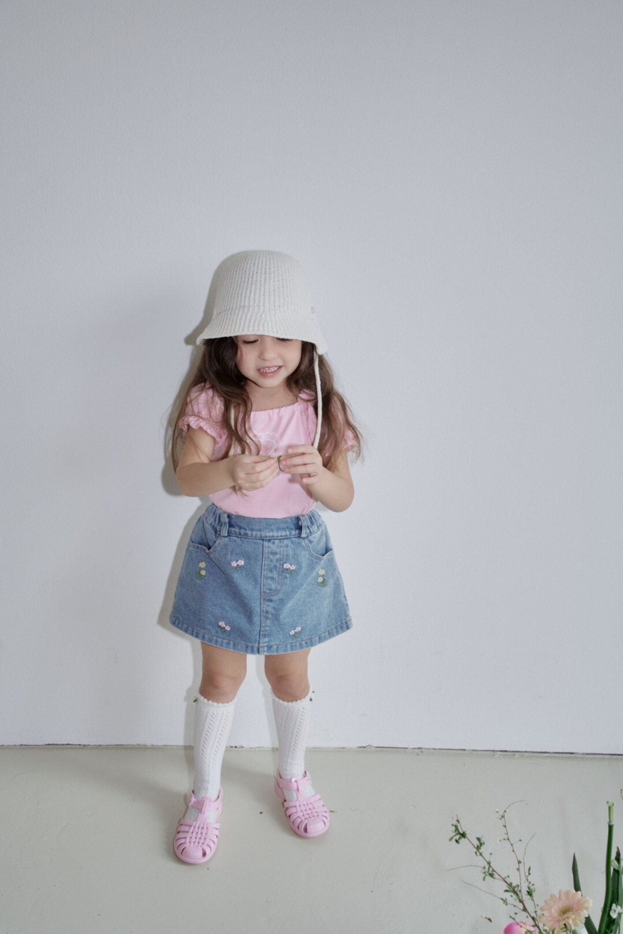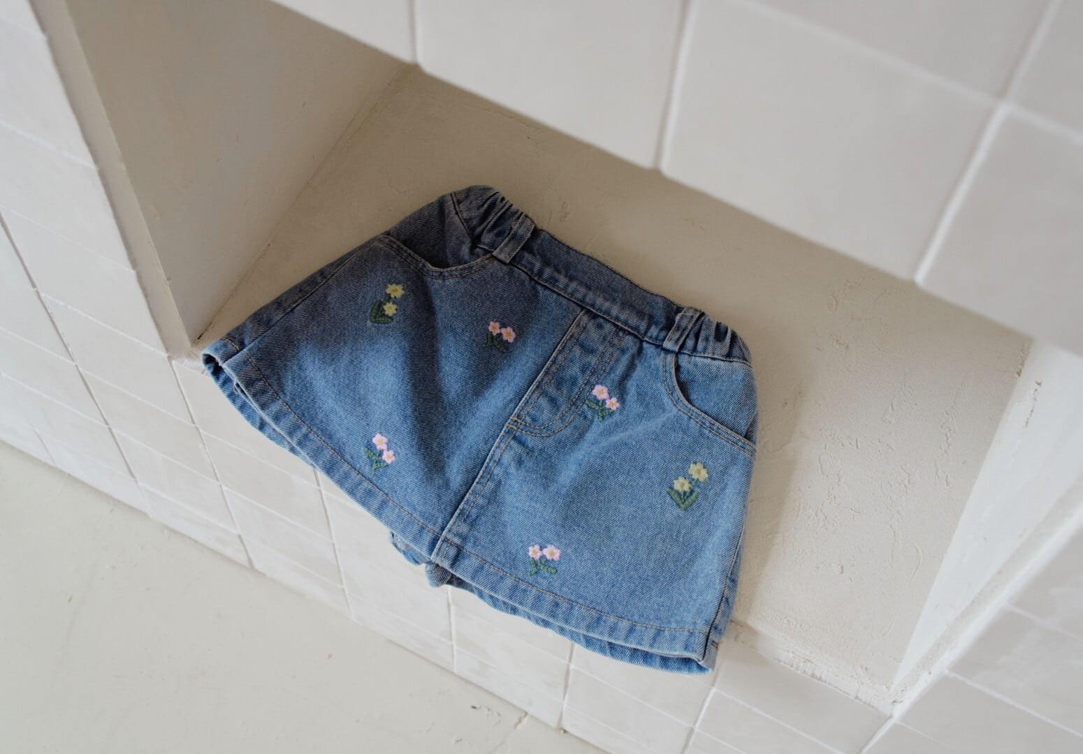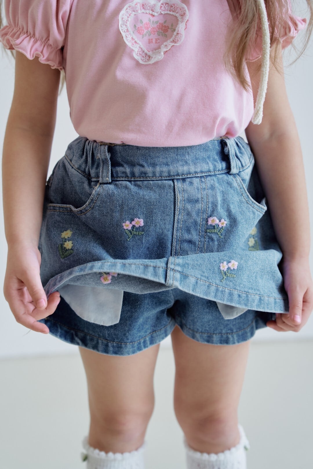 [取寄]送料無料3/29(日) 21:00まで Flower denim shorts / momo ann