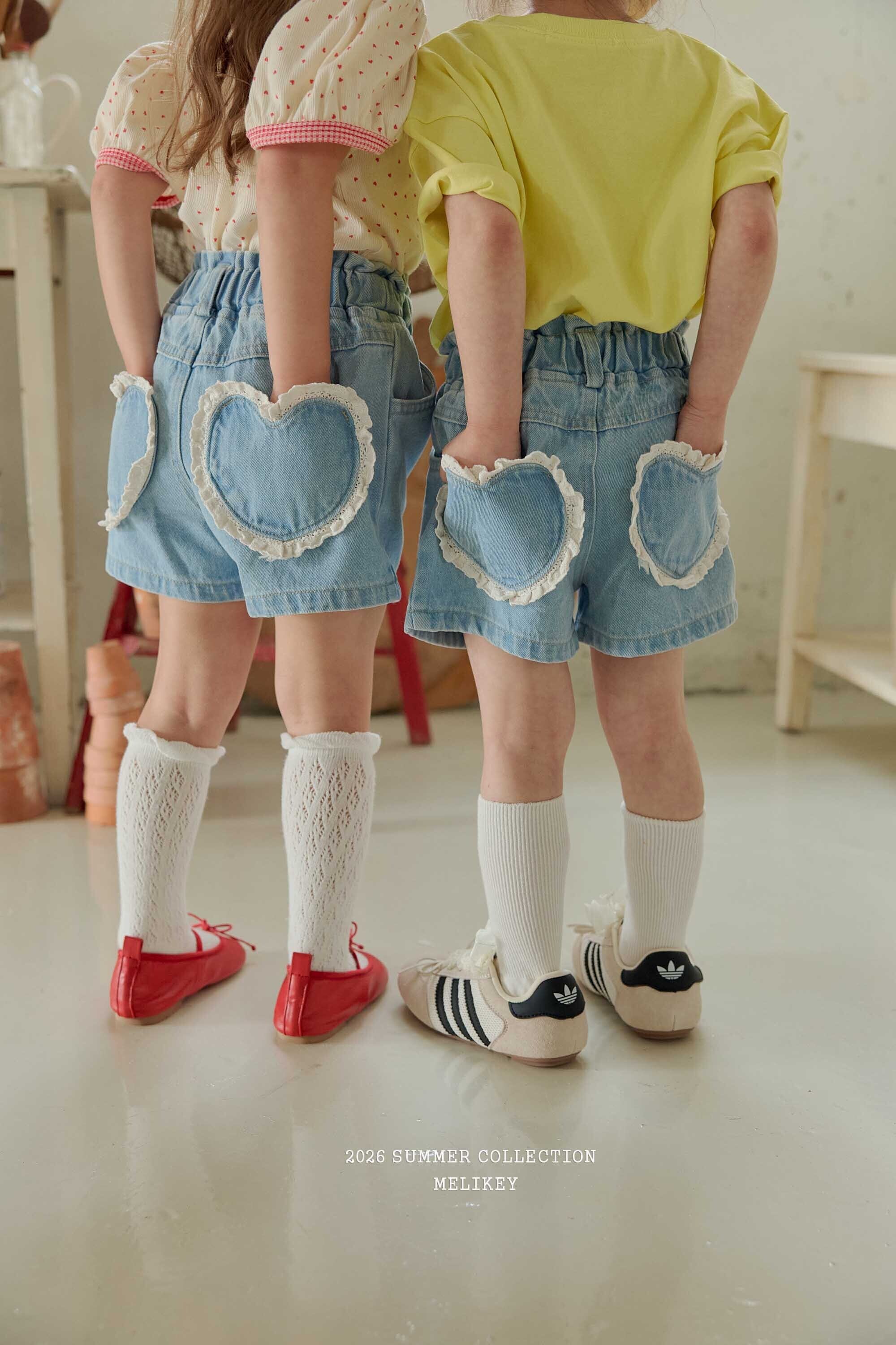 [取寄]送料無料4/2(木) 21:00まで Heart Denim Shorts / MELIKEY