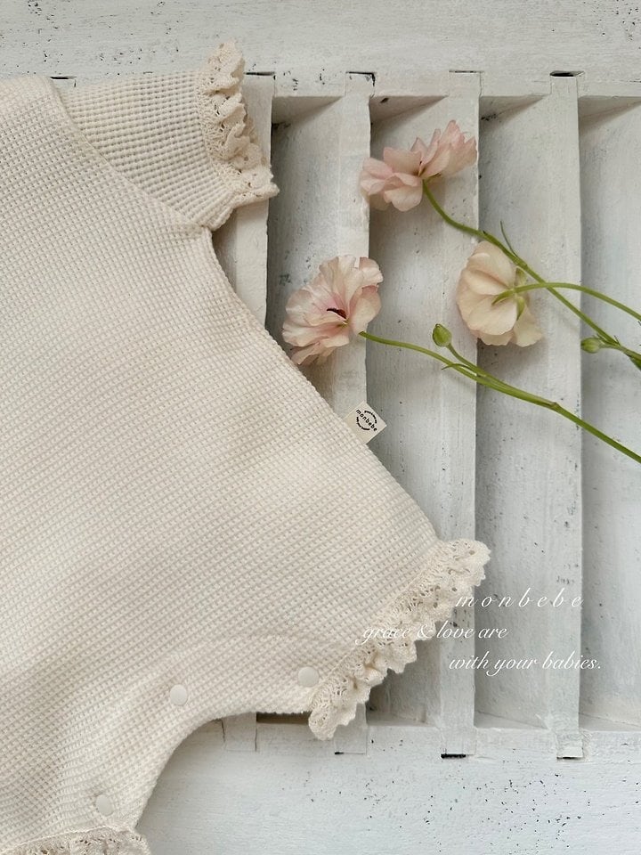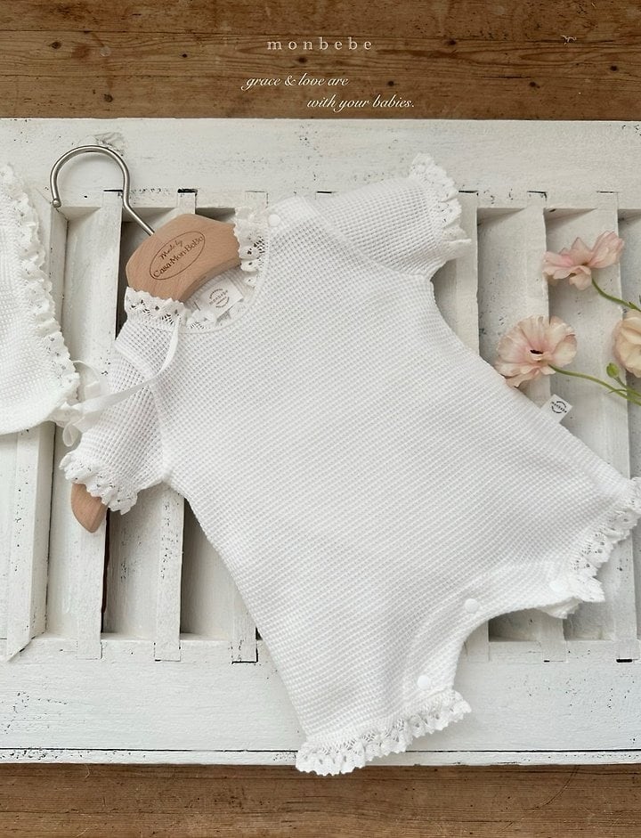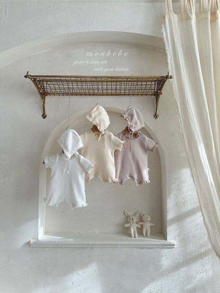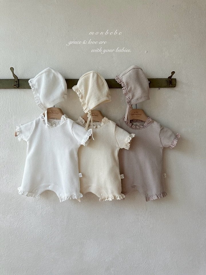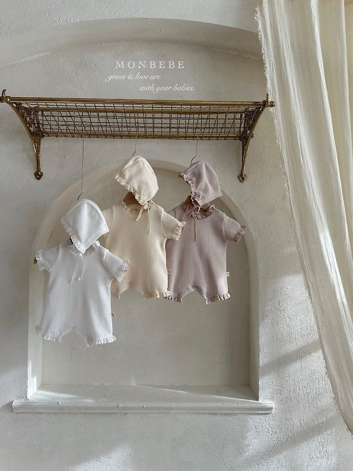 [取寄]送料無料4/12(日) 21:00まで bebe) Summer waffle suit (with bonnet) / monbebe