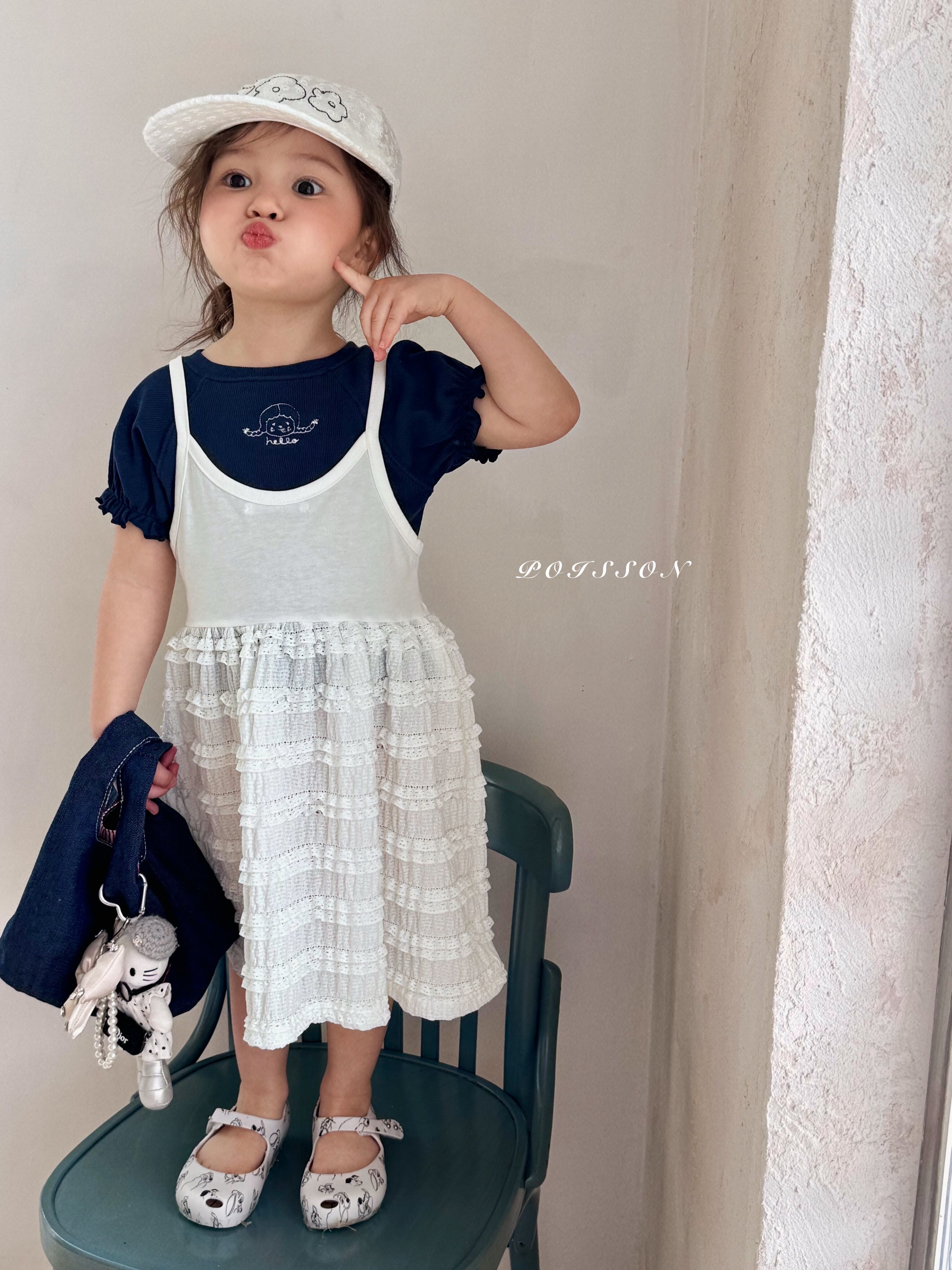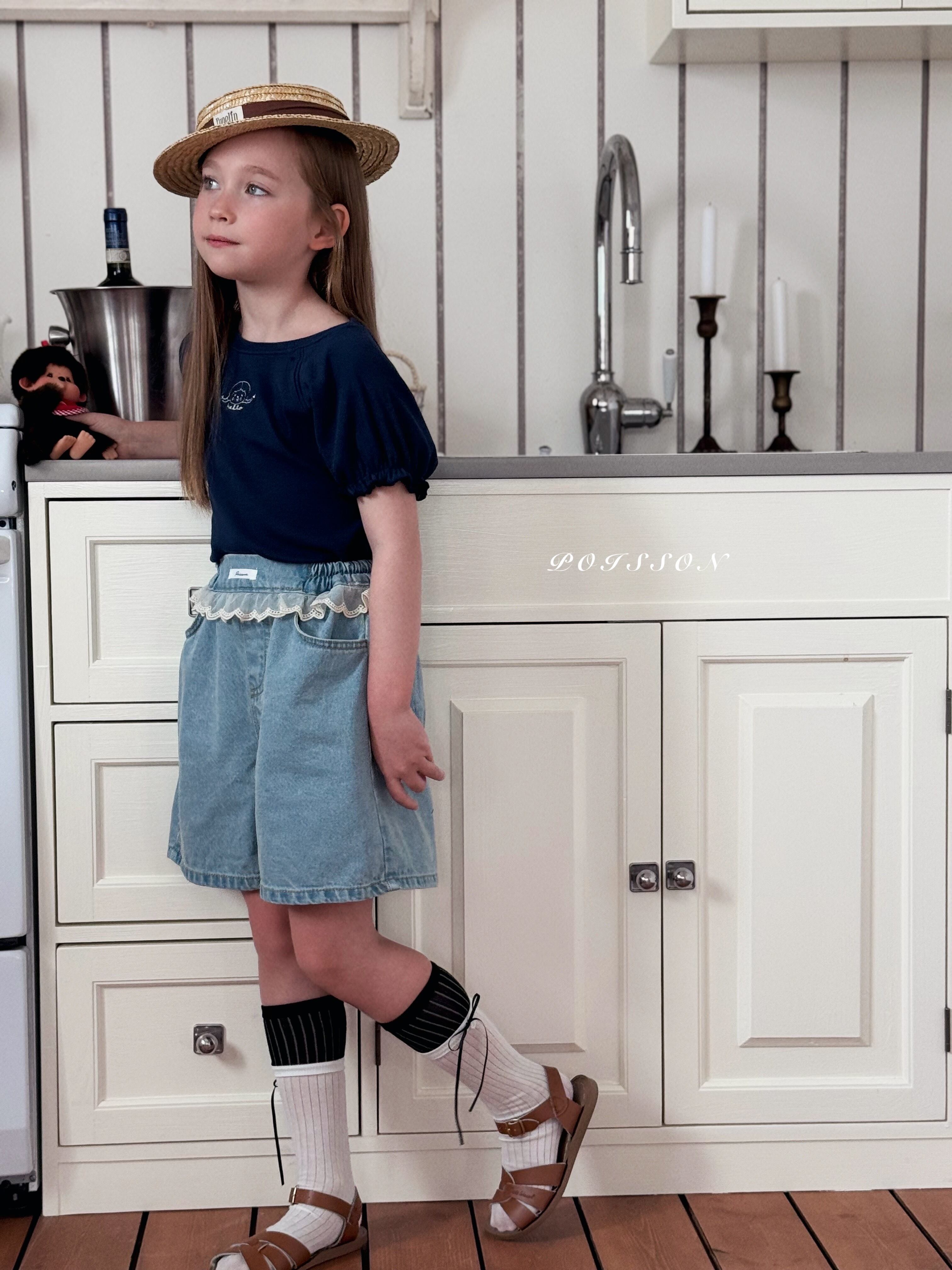 [取寄]送料無料4/19(日) 21:00まで Girl's embroidered T-shirt / POISSON