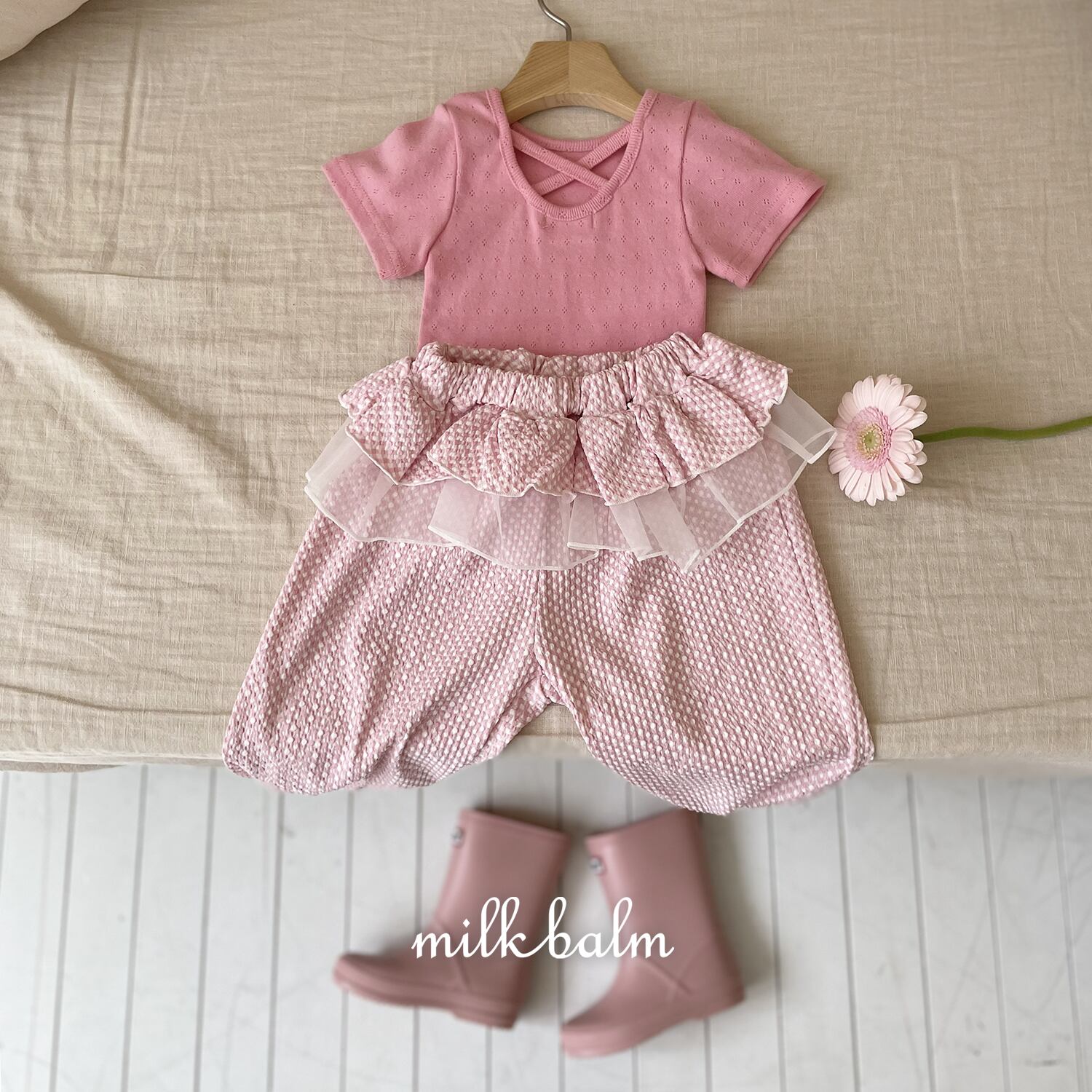 [取寄]送料無料4/26(日) 21:00まで Check Ruffled Pants / milk balm