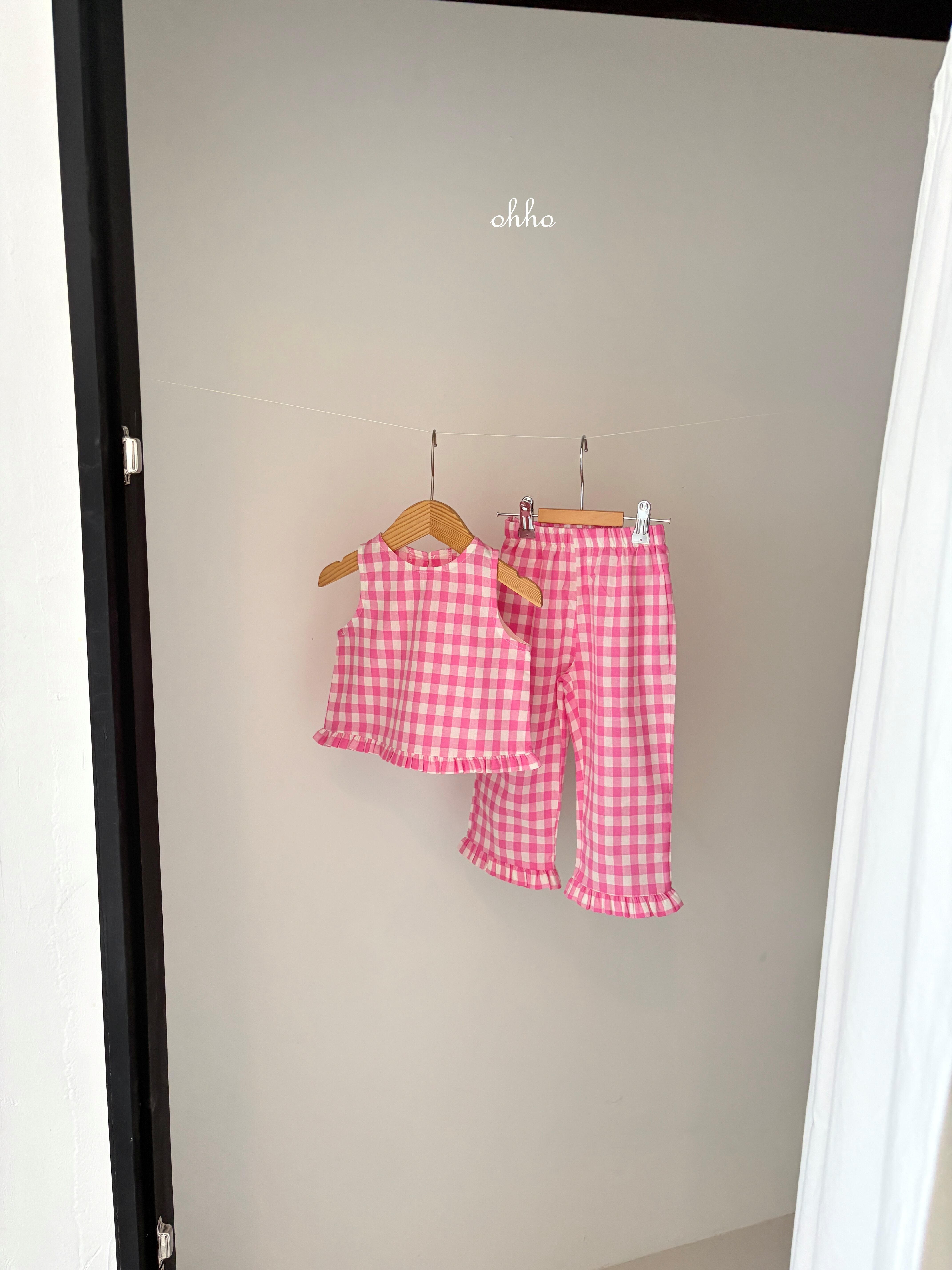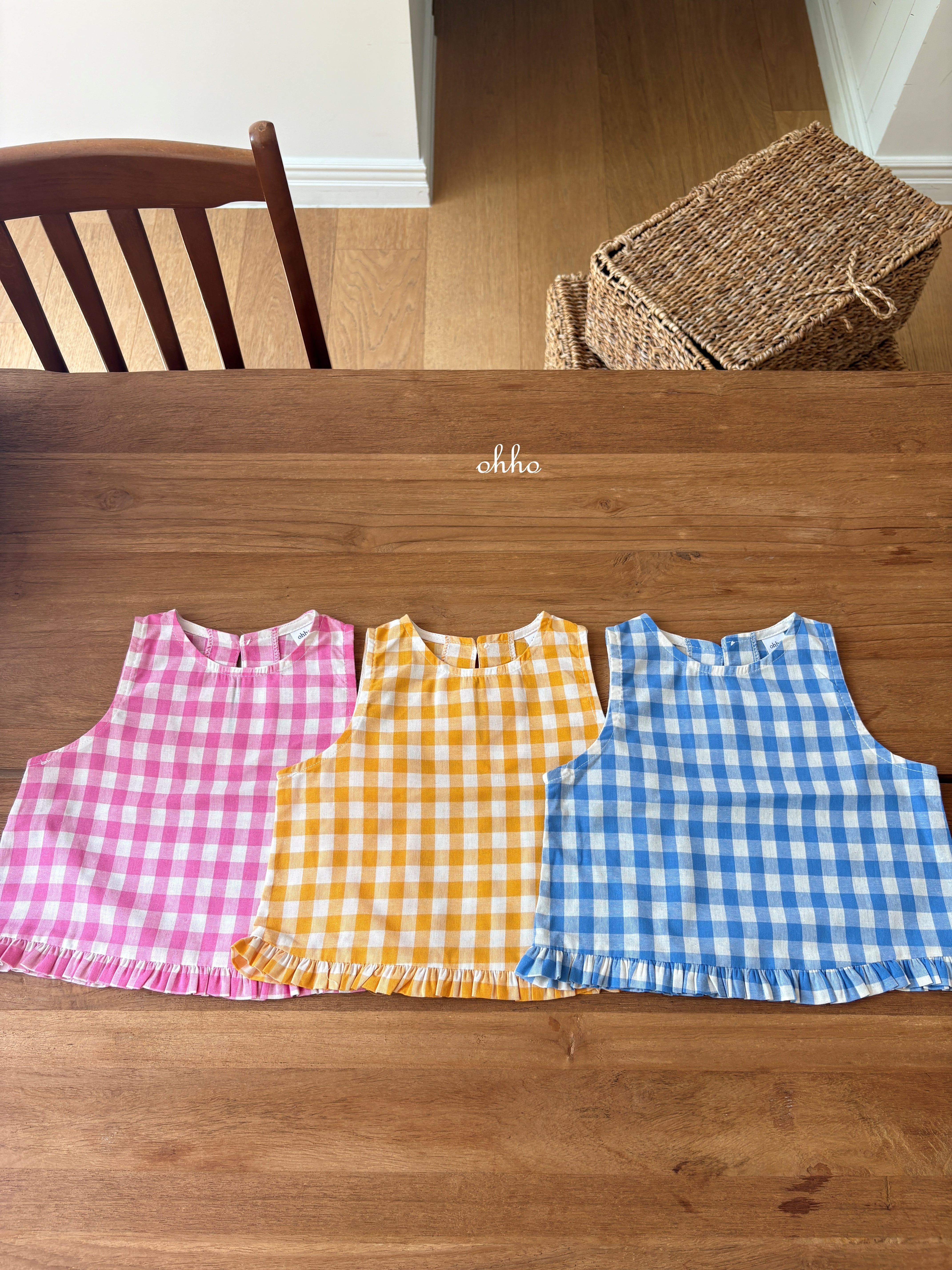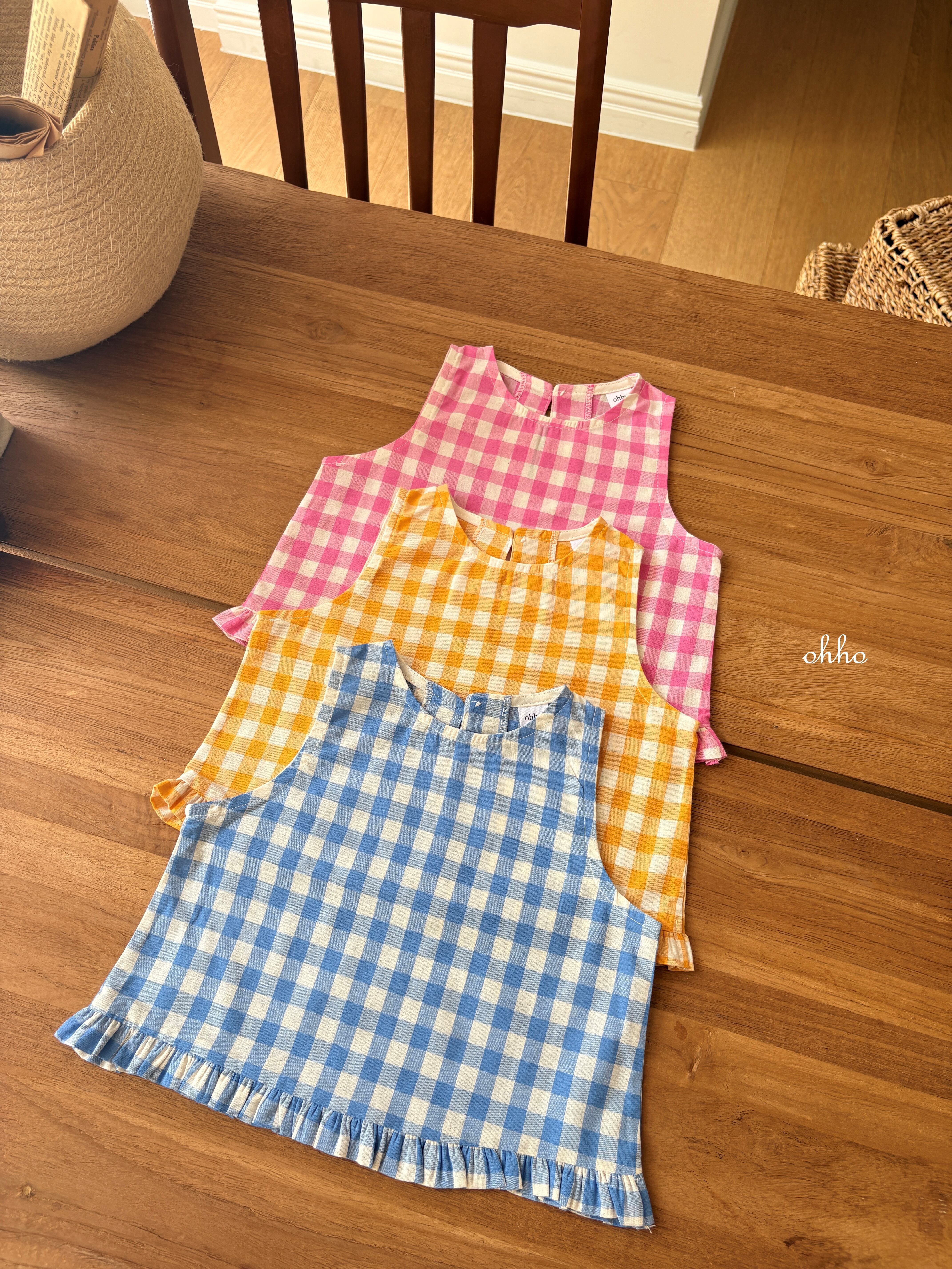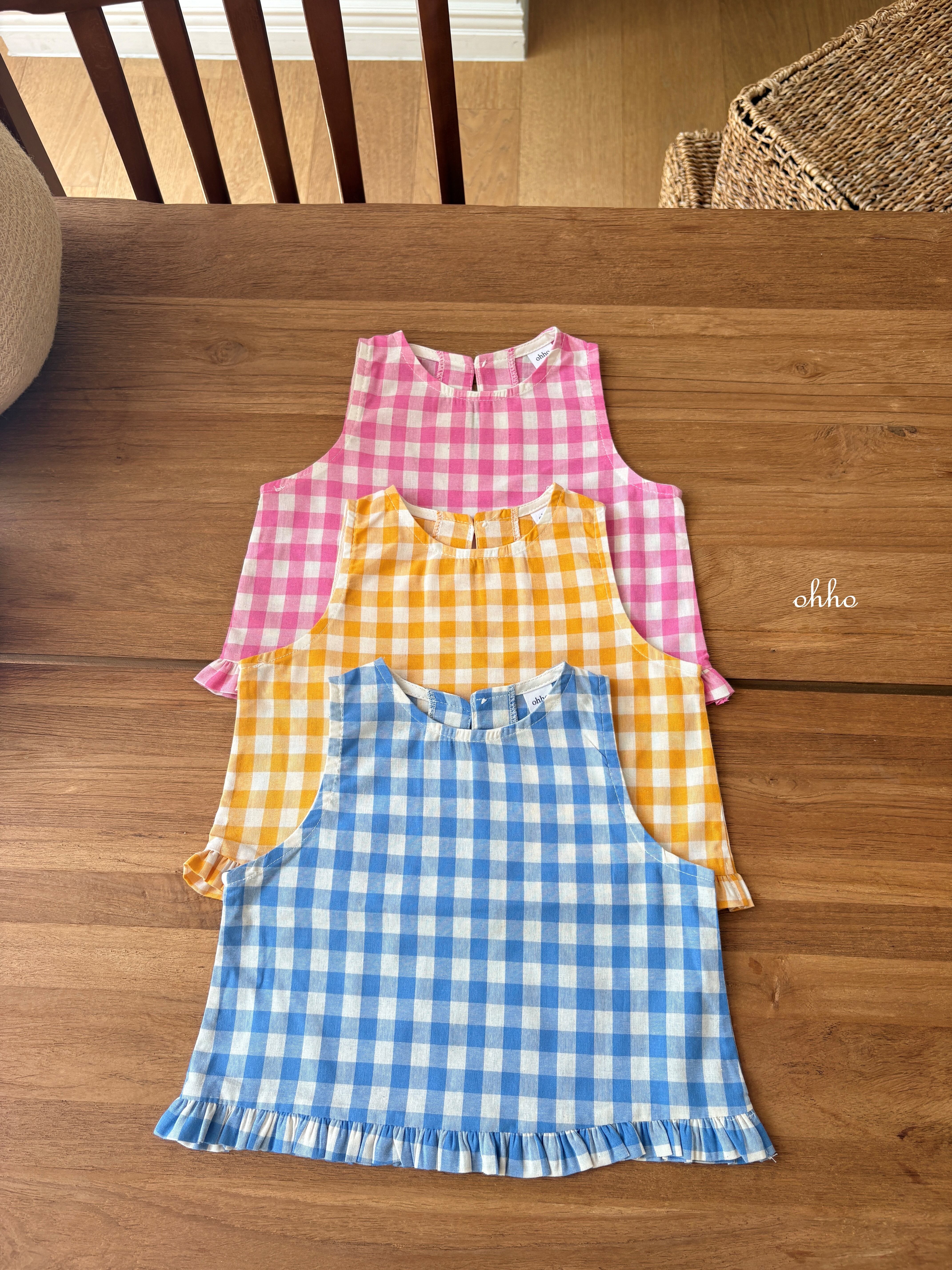 [取寄]送料無料4/28(火) 21:00まで Gingham Ruffle Sleeveless / ohho