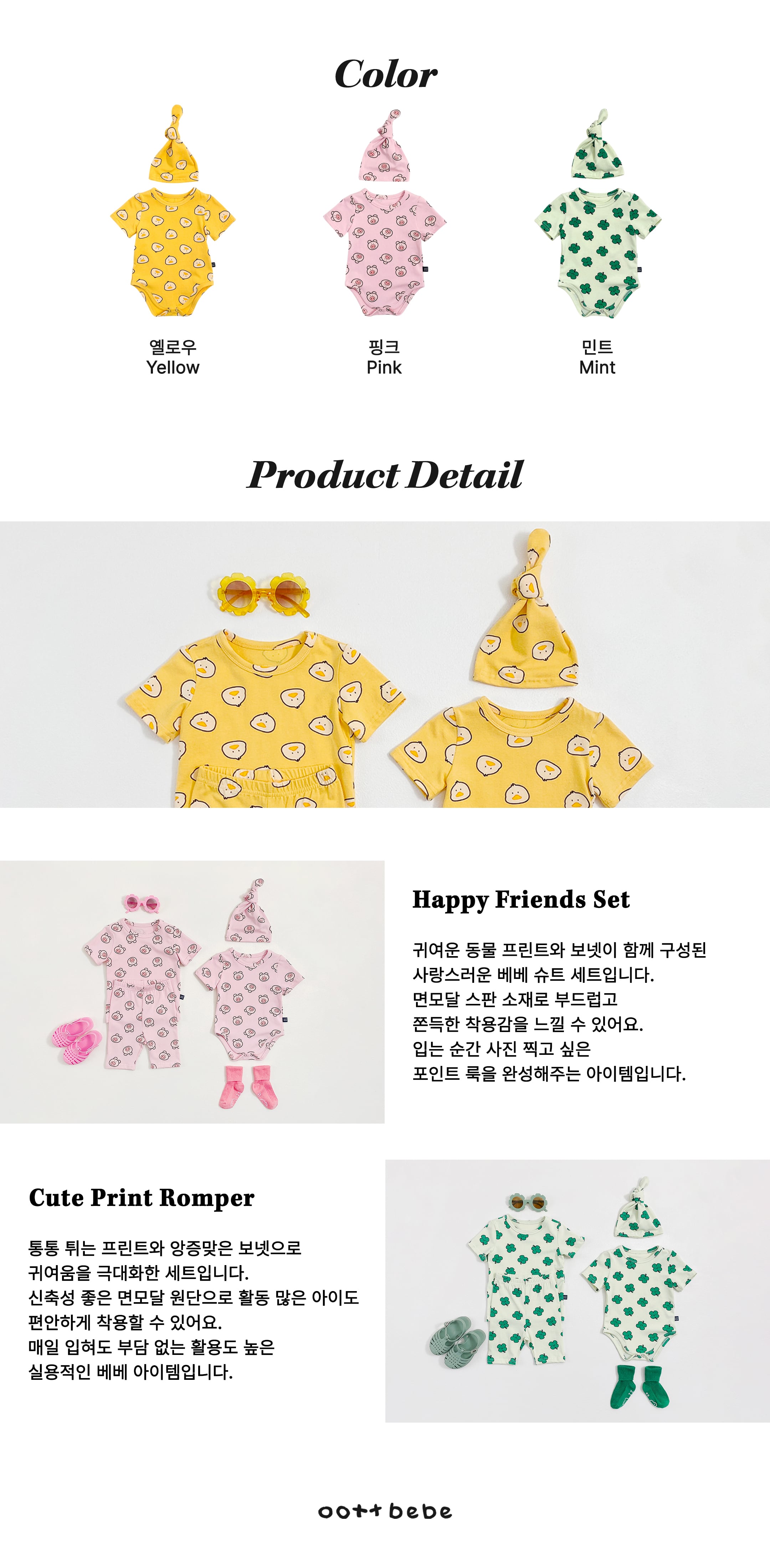 [取寄]送料無料5/2(日) 21:00まで bebe) Happy Friends Suit Bonnet Set / oottbebe